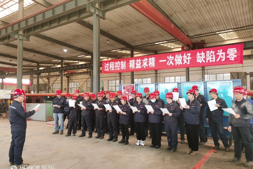 各部門(mén)及車間積極響應(yīng)號(hào)召,通過(guò)各種形式,開(kāi)展對(duì)員工的質(zhì)量培訓(xùn)。在廠區(qū)顯著位置懸掛橫幅和標(biāo)語(yǔ)。并利用班前班后會(huì)進(jìn)行宣傳,組織員工學(xué)習(xí)《質(zhì)量管理辦法》及有關(guān)質(zhì)量制度、質(zhì)量法規(guī),營(yíng)造“人人關(guān)心質(zhì)量、人人重視質(zhì)量”的氛圍,牢記我公司嚴(yán)、細(xì)、精、誠(chéng)的質(zhì)量方針。每位員工也作了質(zhì)量宣誓,鄭重地表達(dá)自己對(duì)質(zhì)量的態(tài)度和對(duì)本次活動(dòng)的重視。