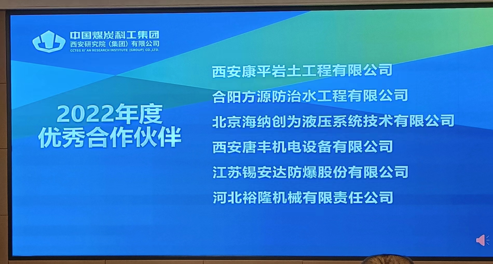 喜報(bào)——祝賀我公司獲得中國煤炭科工集團(tuán)西安研究院有限公司“2022年優(yōu)秀合作伙伴”榮譽(yù)稱號(hào)